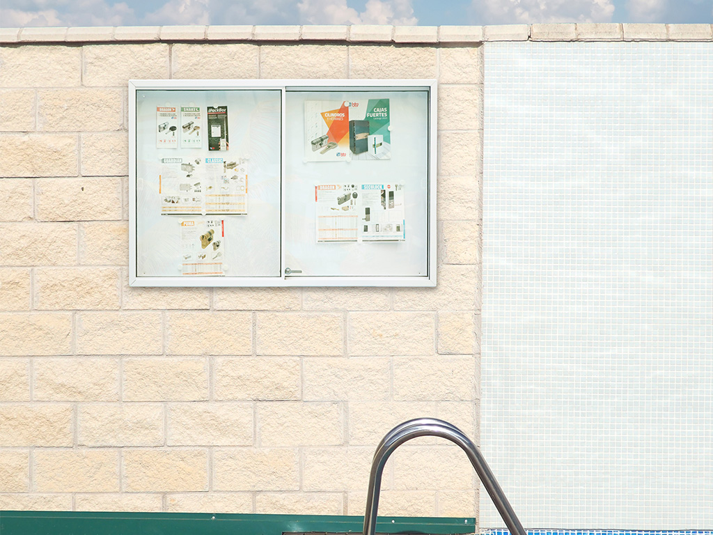 - Vitrinas para comunidades: son elementos útiles para exhibir información importante para los residentes, como normativas de convivencia, horarios de reuniones y avisos relevantes. Además de su función informativa, las vitrinas también pueden servir como elemento de seguridad al mantener estos documentos protegidos de la intemperie y de posibles actos vandálicos.