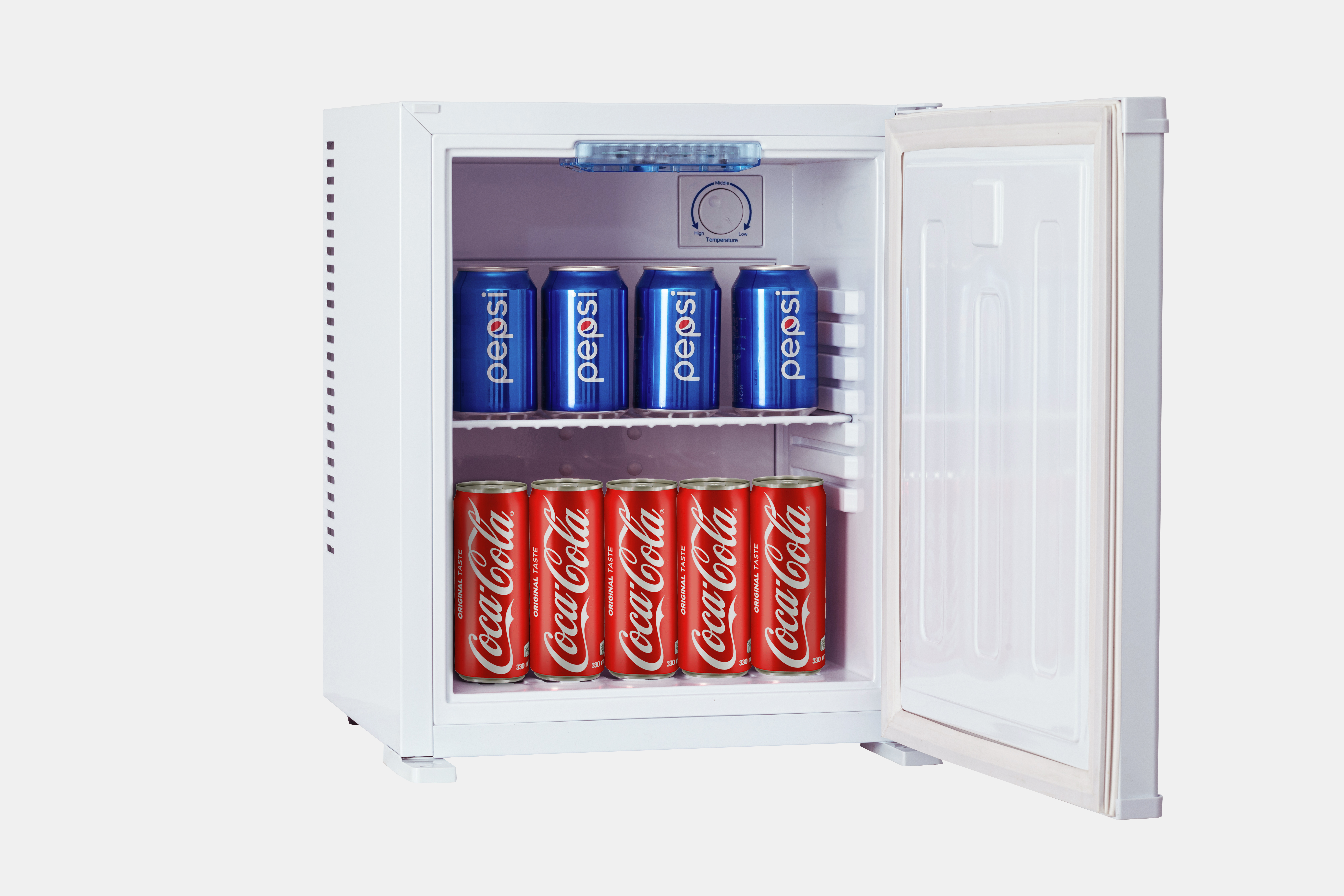 Para adaptarnos a todas las necesidades que tiene el mercado, tenemos diferentes medidas y capacidades de minibar (20L, 26L, 30L, 40L, 46L, 95L)