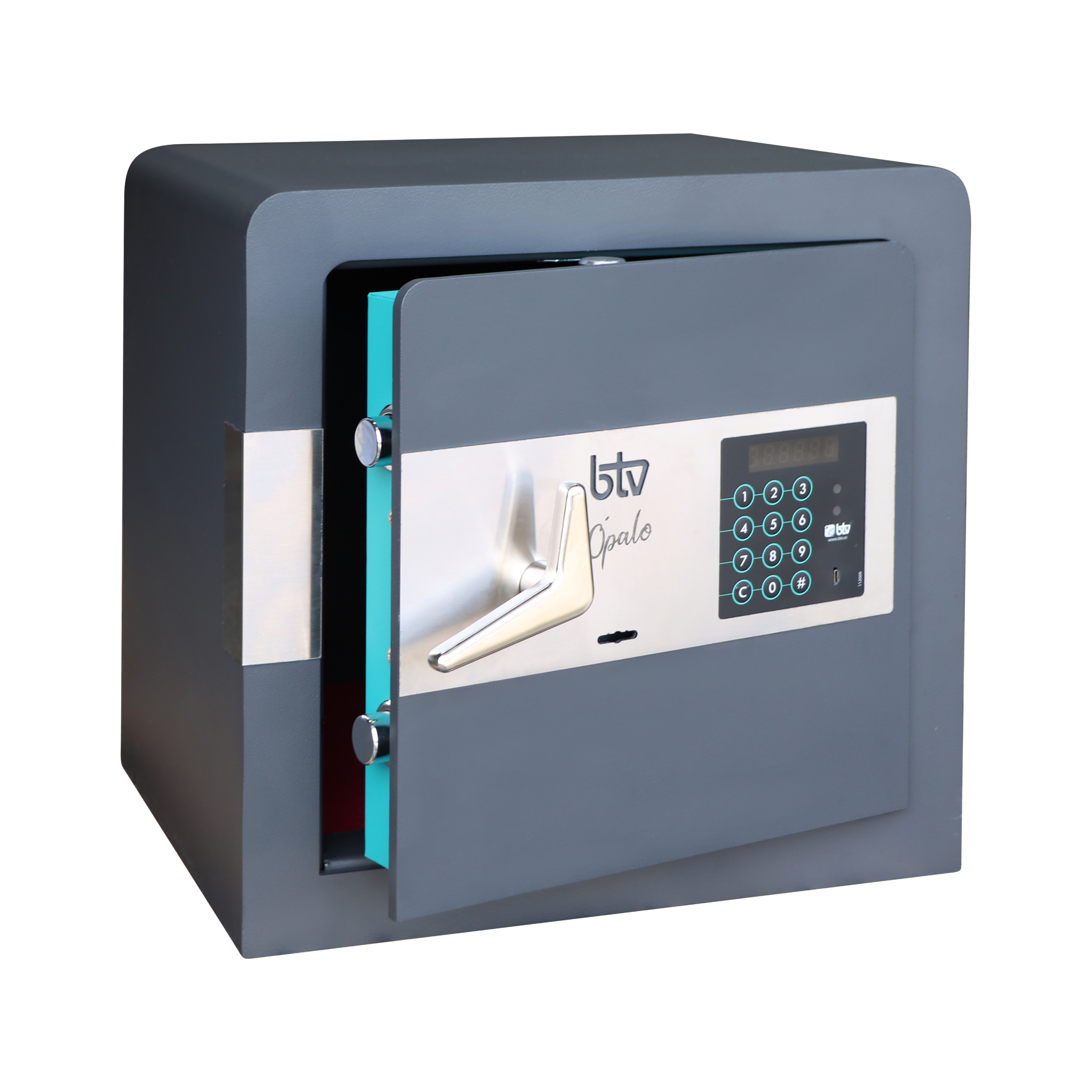 - Sistema de cierre: Electronic lock with a code of 3 to 15 digits, with an 8-digit emergency code. Programmable opening delay between 1 and 99 minutes.