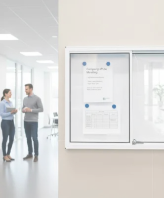 - Tablones de anuncios y vitrinas: gestión visible de comunicaciones y correspondencia; opciones con llave y para interior/exterior.